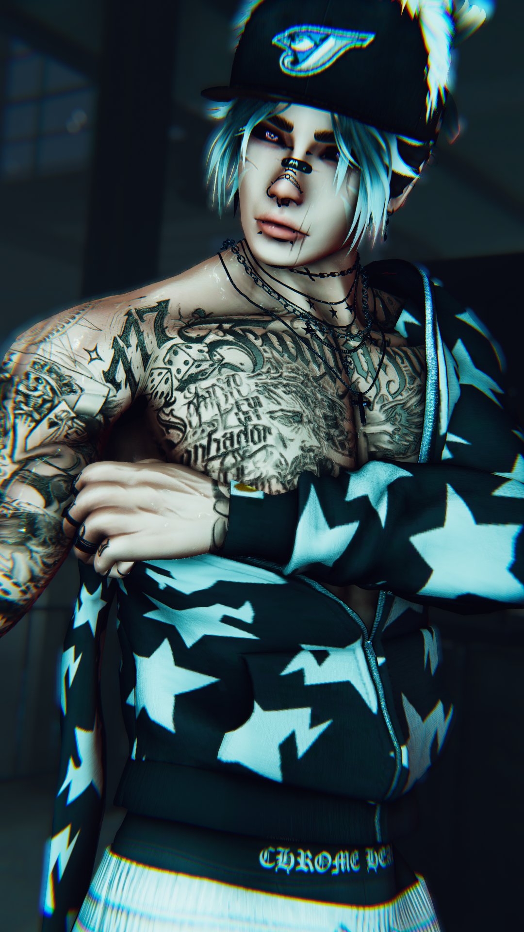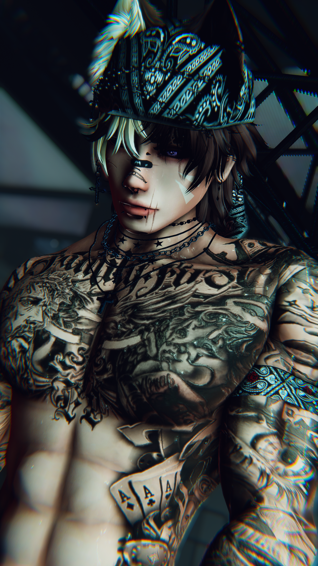 You're under no circumstances allowed to rip anything off the avatar for personal/commercial use. You can find the assets used below. i.e. don't asset farm my avatar
